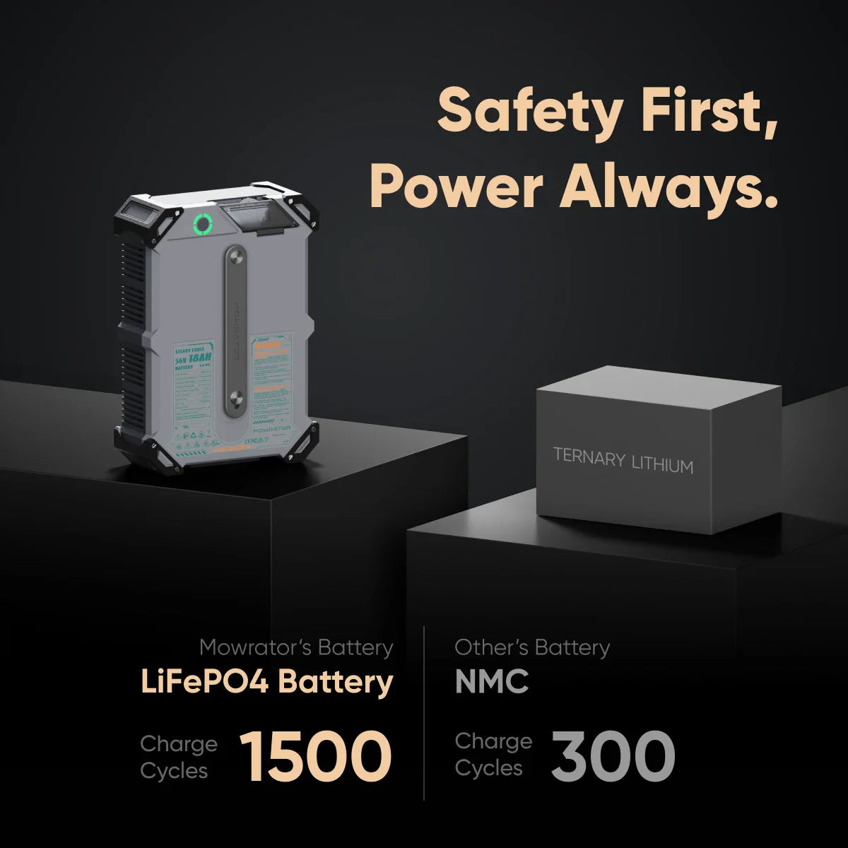 LiFePO4 battery with 1500+ cycles(3X Industry Average) and Smart BMS ensures durable, safe, and cost-efficient operation.