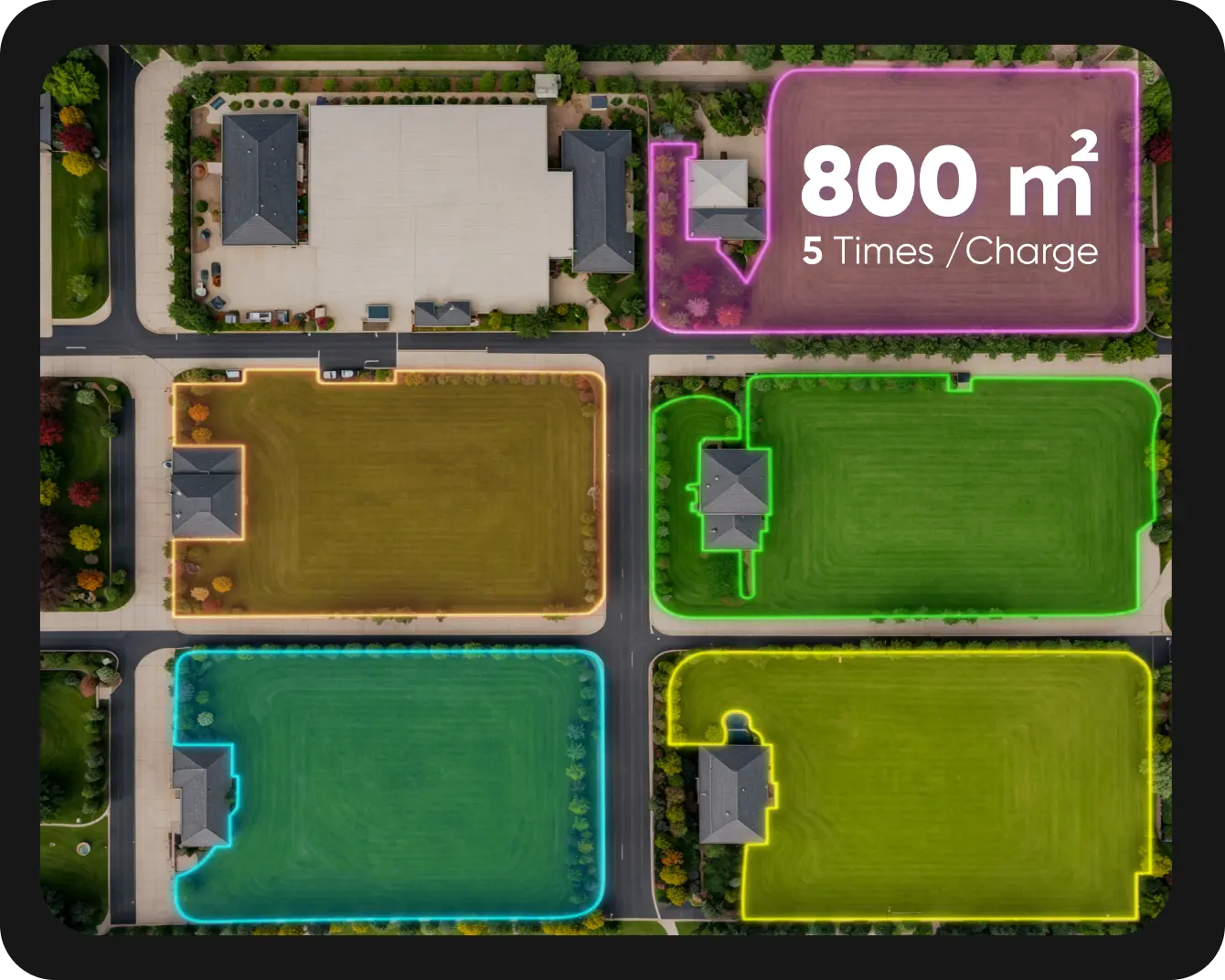 Mow up to 2000 ㎡ in an hour, adjusting the speed between 1.5 and 3.5 mph, five times faster than most smart mowers. Our 53cm, 3000rpm blade makes easy work of lawn.