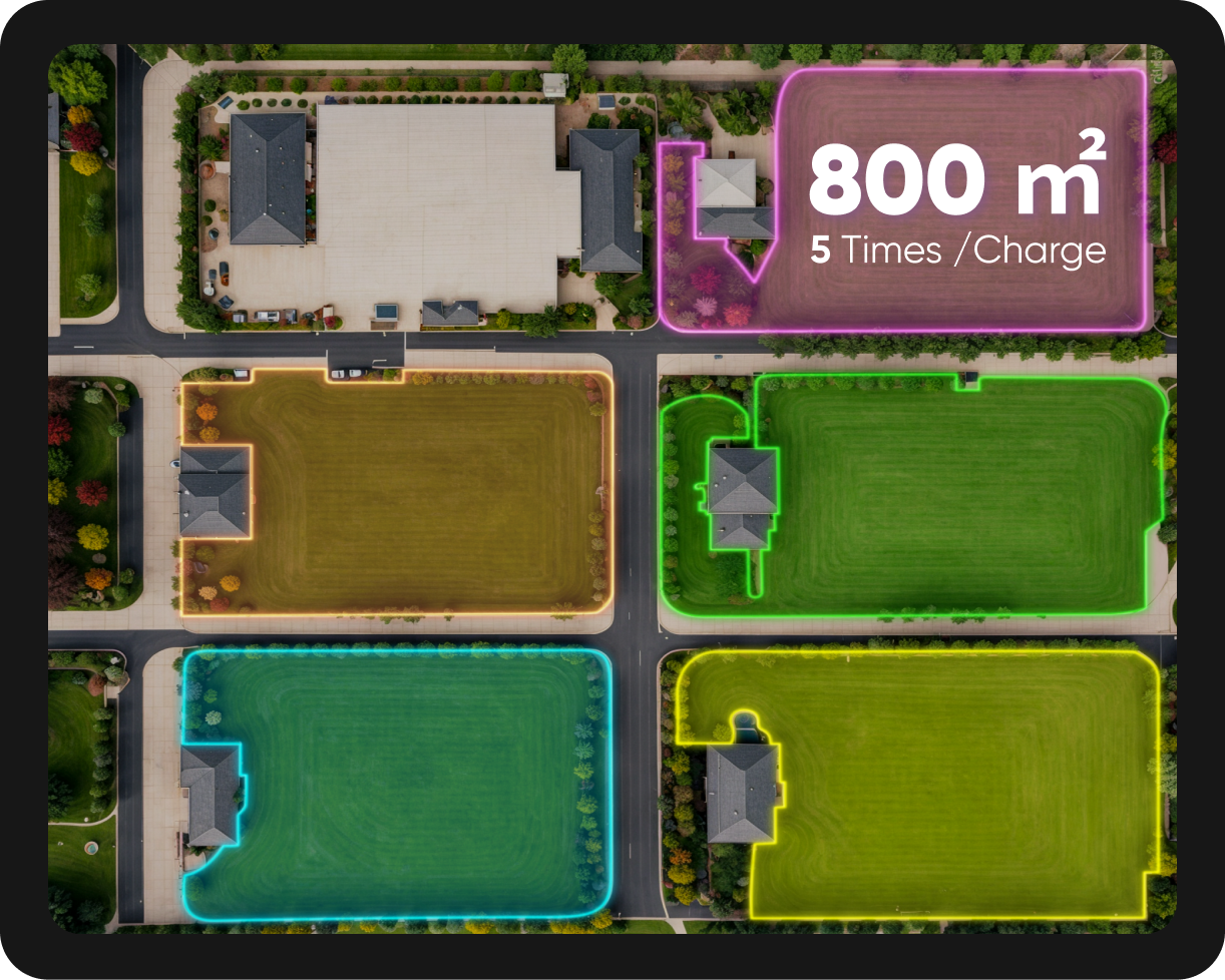 Powered by an Automotive-grade 56V 18Ah LiFePO4 Battery, enjoy 2.25 hours of continuous mowing—no charging breaks or extra batteries needed. The 600W Supercharger fully charges in just 90 minutes, making large-area mowing effortless and worry-free.