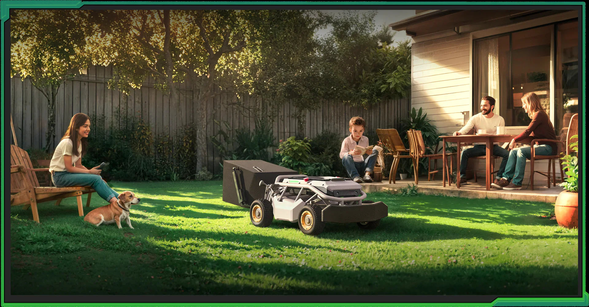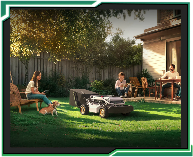 No complicated manuals needed. Just grab the controller. Smooth thumbstick steering and trigger controls let anyone mow confidently within 10 seconds – whether it’s grandpa or teens. E-sports-grade 5ms ultra-low latency makes mowing as fun and easy as playing a game.