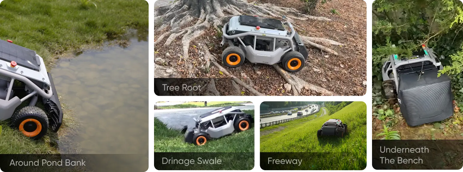 In addition, the Mowrator S1 4WD can effortlessly traverse complex terrains and obstacles such as potholes, pond edges, and tree roots without getting stuck, ensuring efficient mowing and helping you quickly create the perfect yard.
